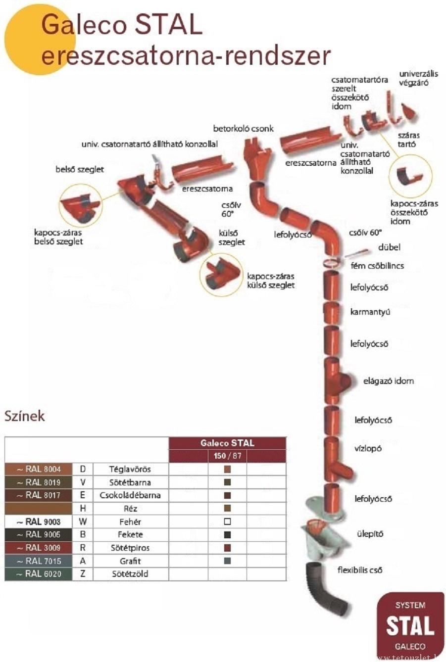 Kategóriák  Esőcsatornák  Galeco esőcsatornák  Galeco acél esőcsatorna  Acél 150 csatorna 87-es csővel (Rézszínű)